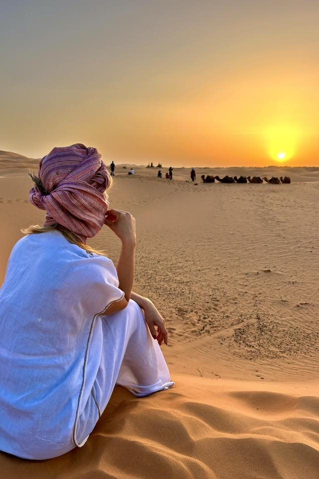 Ez egy gondosan megkomponált marokkói escape, ahol a város vibrálása, a sivatag csendje és az Atlasz zöld kontrasztja egymásra épül.